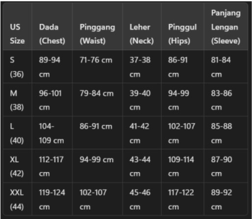 Size Chart Pria (Men’s Shirt & Cardigan - US Size)