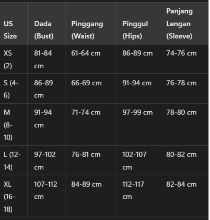 Size Chart Wanita (Women’s Dress, Women’s Top - US Size)